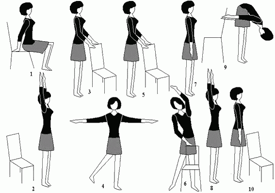 Повторите все упражнения 3-6 раз. Старайтесь выполнять гимнастику ежедневно, как бы вы не уставали на работе!